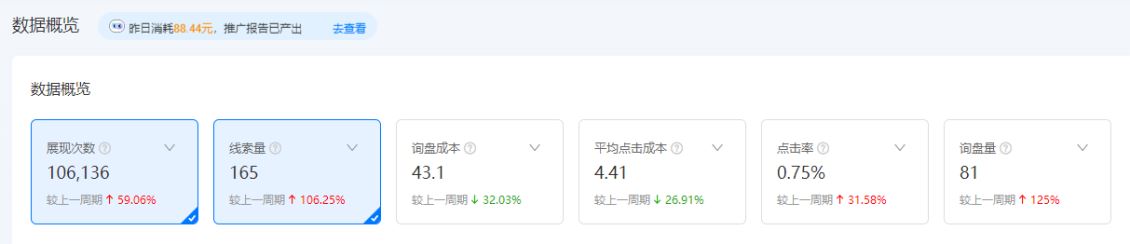 就这样,这个店铺的询盘成本,从60多块钱一个,降到了40块左右。成本一降,同样的预算,询盘量就上去了。询盘基数一大,碰到大客户、精准客户的概率自然就变大了。