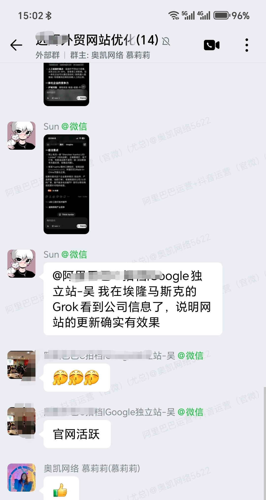 奥凯网络,感谢客户孙总深10点多发来的表扬。表扬我们外贸网站运营的好,公司及产品的信息被埃隆马斯克的Grok收录了信息,并做了正向推荐。