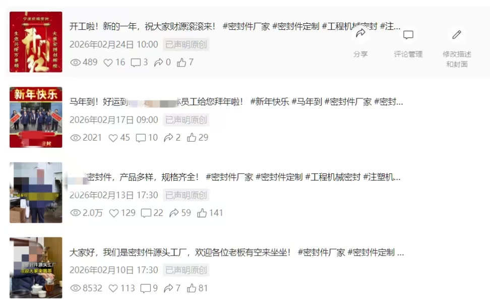 而我们帮他用这套方法落地之后,只发4条视频,就拿到49个精准留资。评论区全是老客户点赞认可,私信里全是要O型圈、骨架油封报价的精准需求。